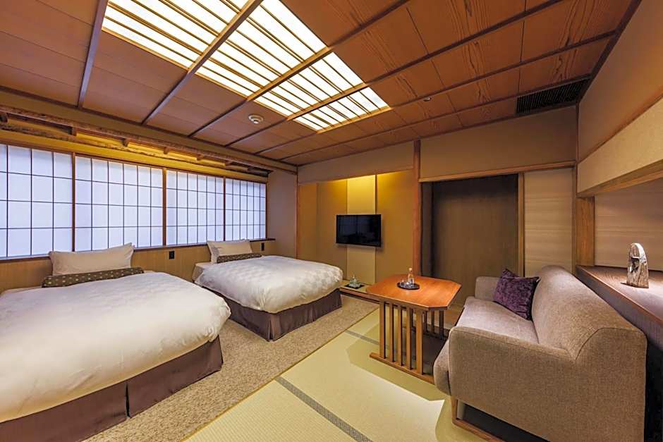 The spacious twin room provides air conditioning, a mini-bar, as well as a private bathroom featuring a bath and a shower. The twin room offers a tea and coffee maker, a safe deposit box, yukata, heating and a flat-screen TV. The unit offers 2 beds.